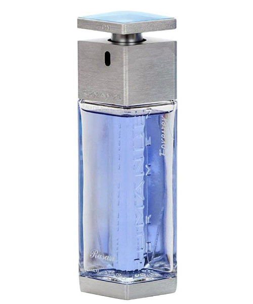 Romance Forever By Rasasi; Its top notes are enriched with the freshness of bergamot; lemon and geranium. For heart notes; it has combined the softness of jasmine and rose. The fragrance ends up on woodsy notes like musk; sandalwood and amber. With a strong; sweet and long lasting smell; this product is best recommended for evening wear.
